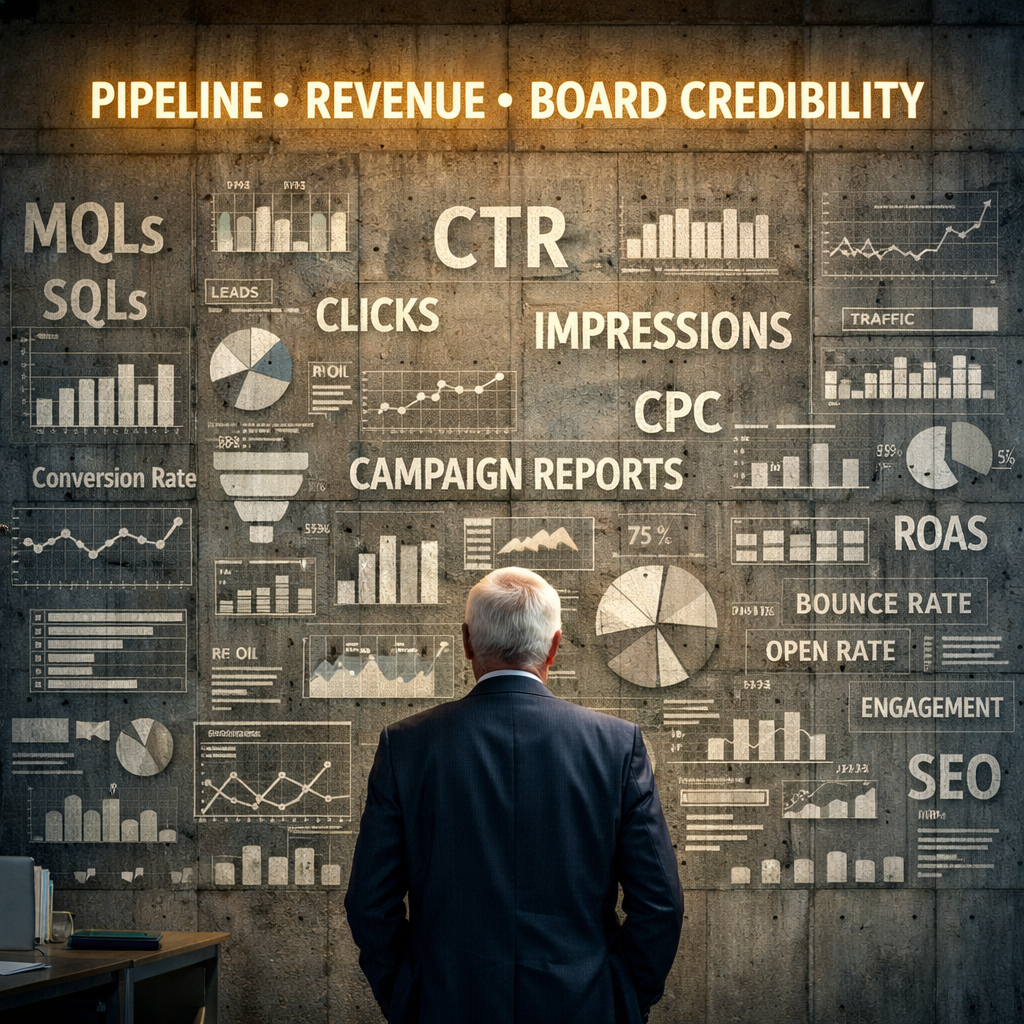 If you're still leading with tactics — click-through rates, MQL volume, campaign performance — you're speaking the wrong language at the wrong table.